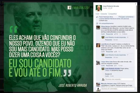 O candidato José Roberto Arruda (PR) afirmou nesta terça-feira (9) que, apesar de o STJ (Superior Tribunal de Justiça) ter mantido sua inelegibilidade por 3 votos a 1, sua campanha será mantida.